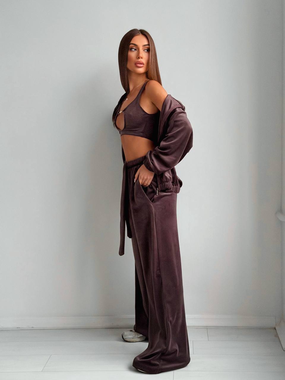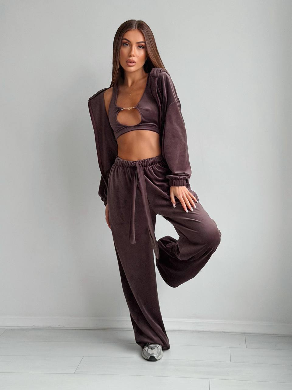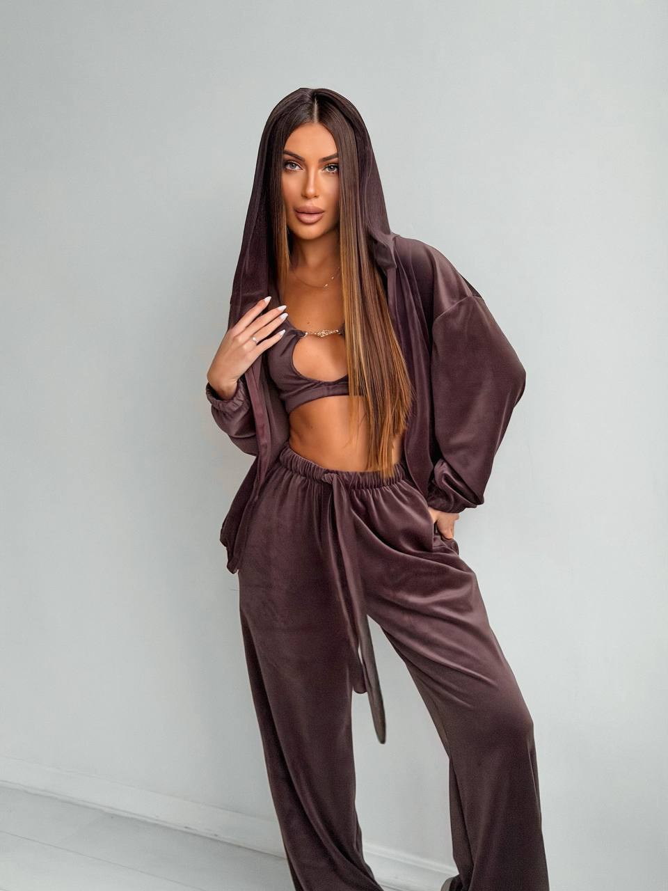 3-ų dalių, soft veliūro laisvalaikio kostiumas. Vienas dydis, kuris puikiai atrodys s/m/l ar net xl nešiojančioms.