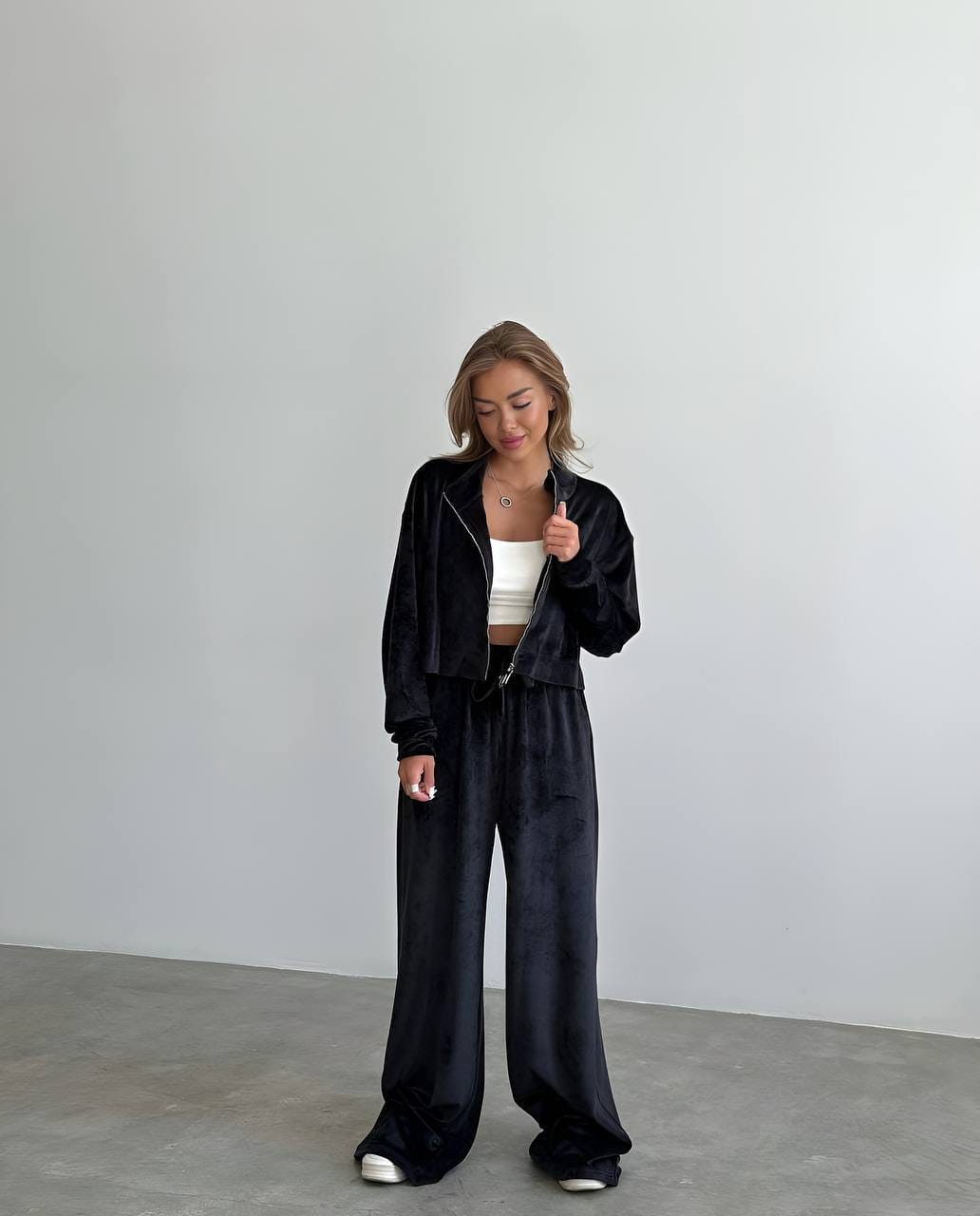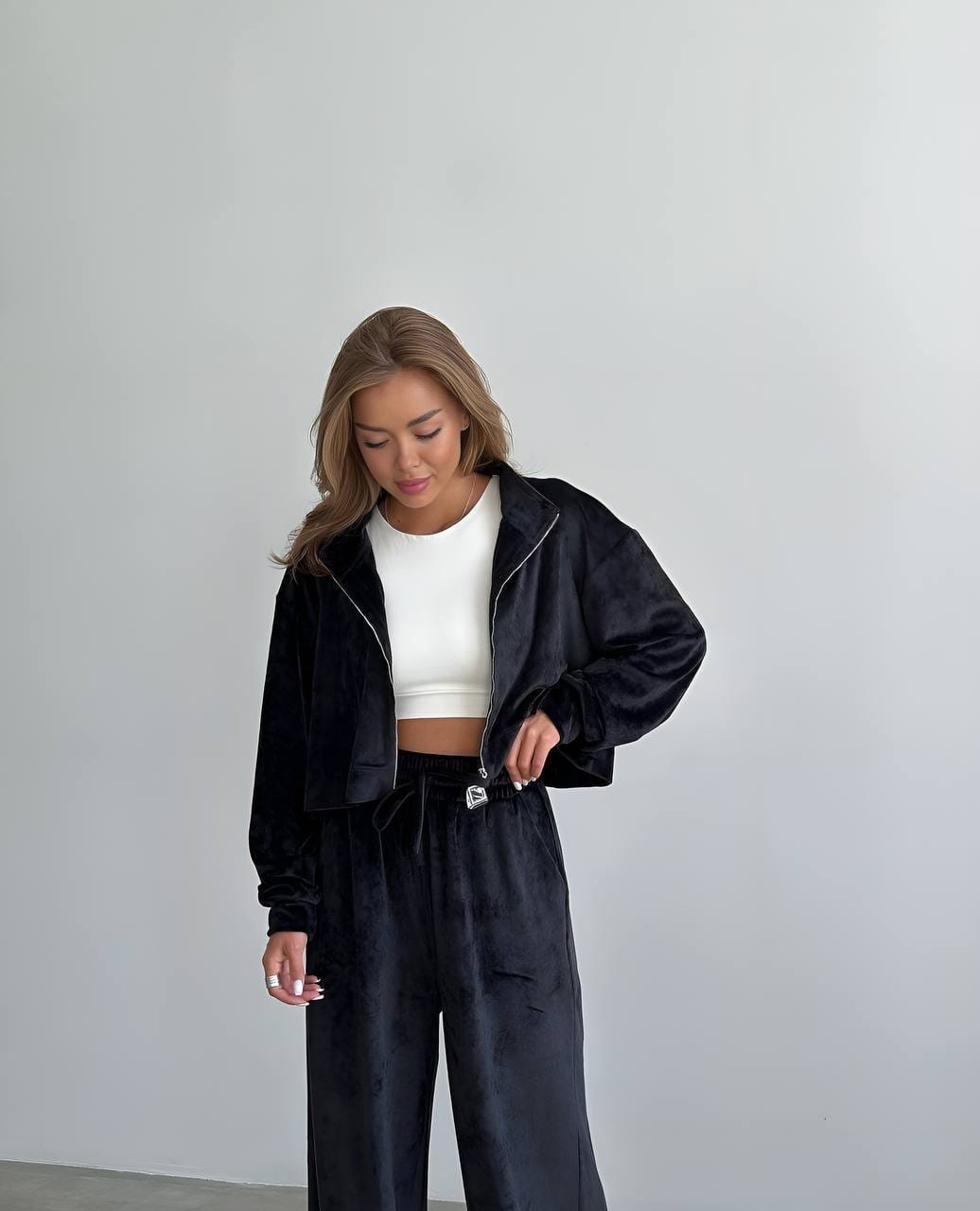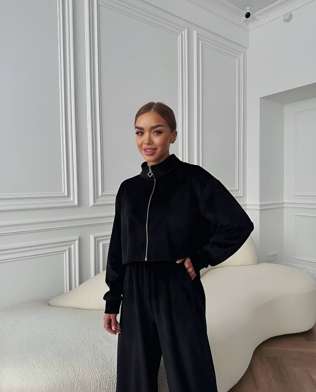 Lengvas, labai patogaus ir malonaus audinio. Laisvalaikio kostiumas žemesnio ūgio savininkėms. Atostogoms, laisvalaikiui ar kasdienai – atrodysite stilingai ir jausitės patogiai.
