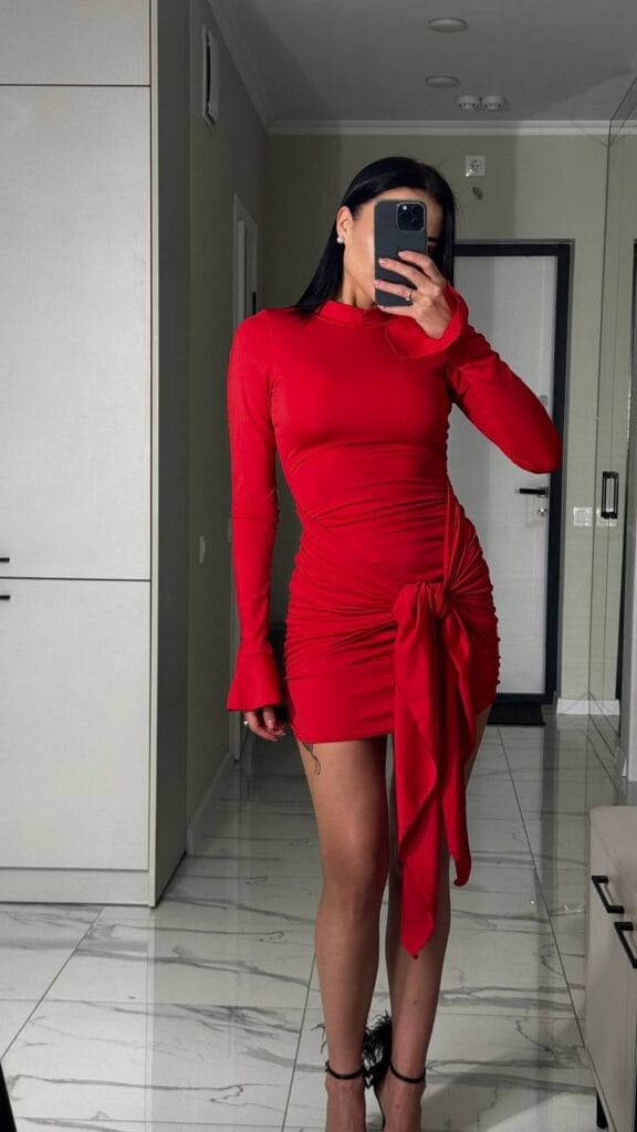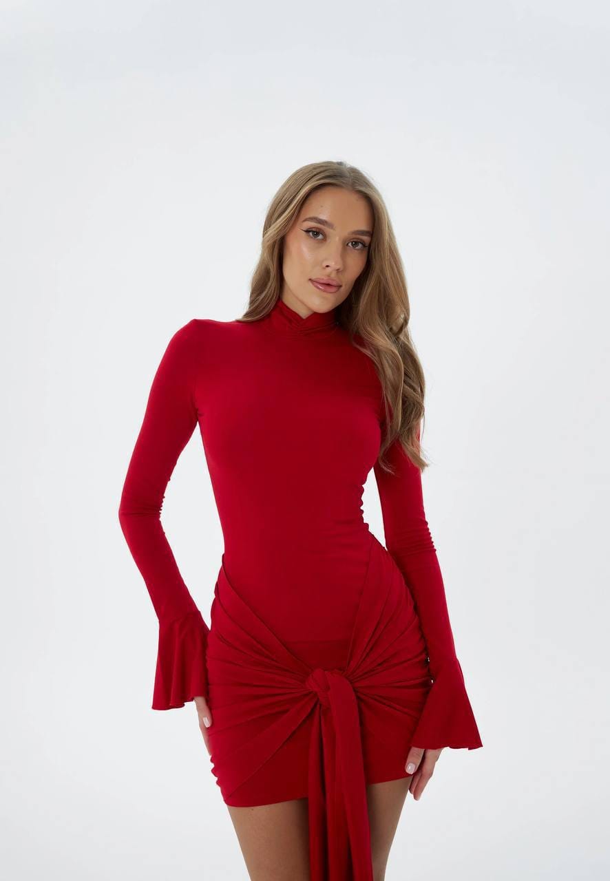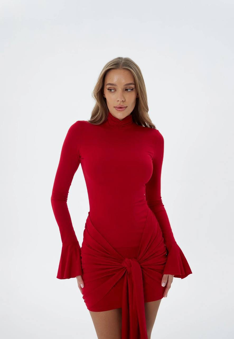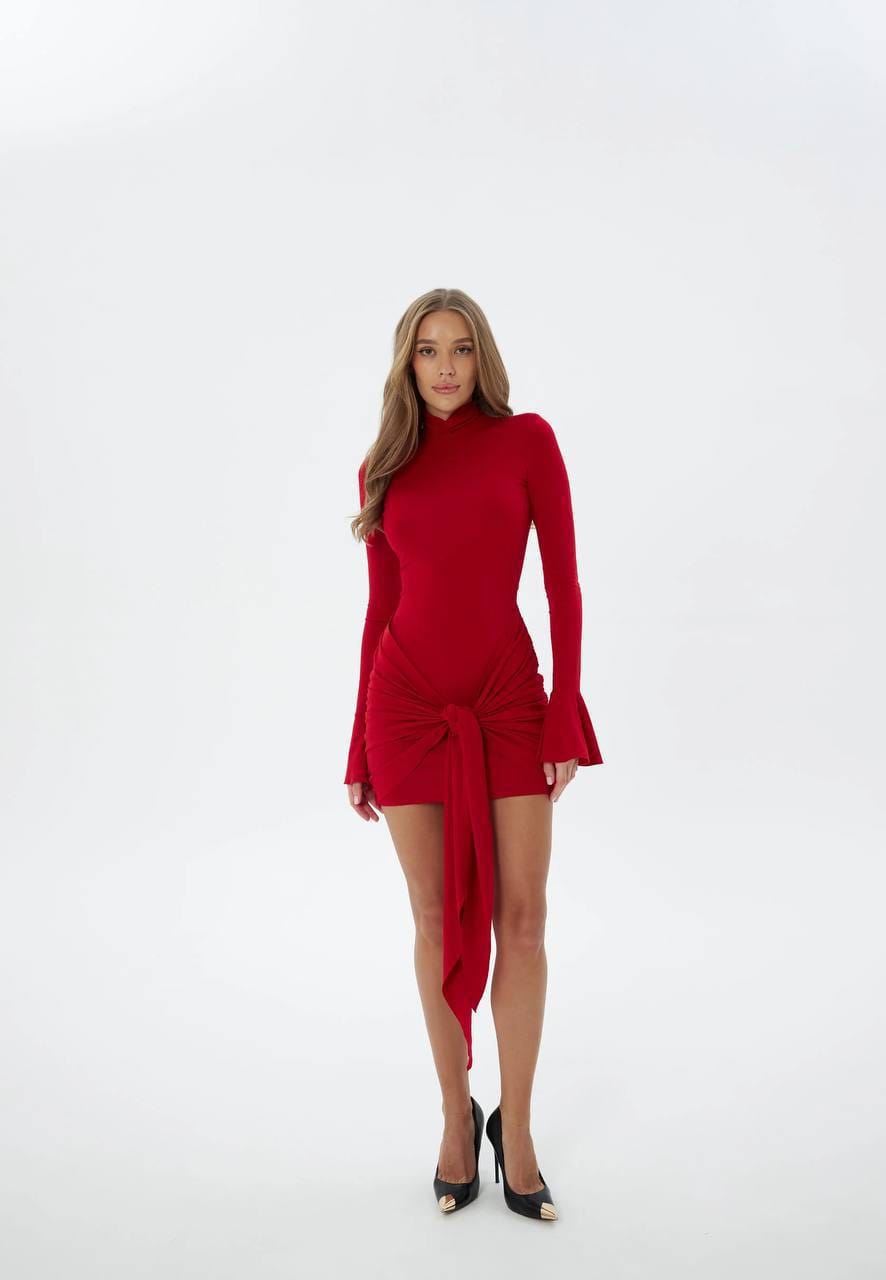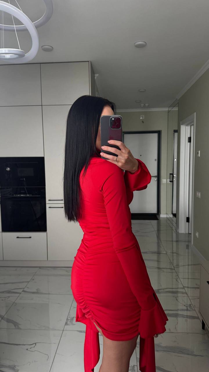 Išskirtinio ir akį traukiančio modelio suknelė. Neliksit nepastebėta ! Spalva raudona, bet lyg vos vos turėtų oranžinio atspalvio dienos šviesoje.