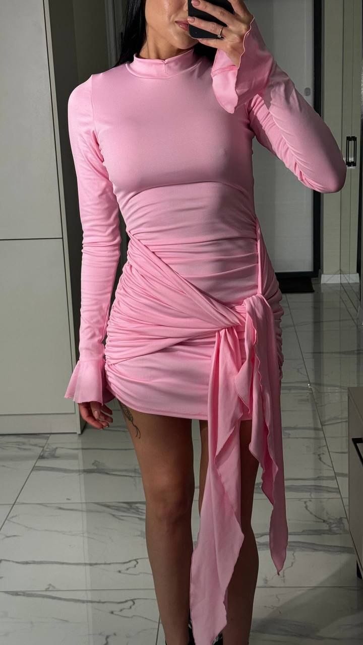 Išskirtinio ir akį traukiančio modelio suknelė. Neliksit nepastebėta ! Švelni rožinė, baby pink spalvytė.